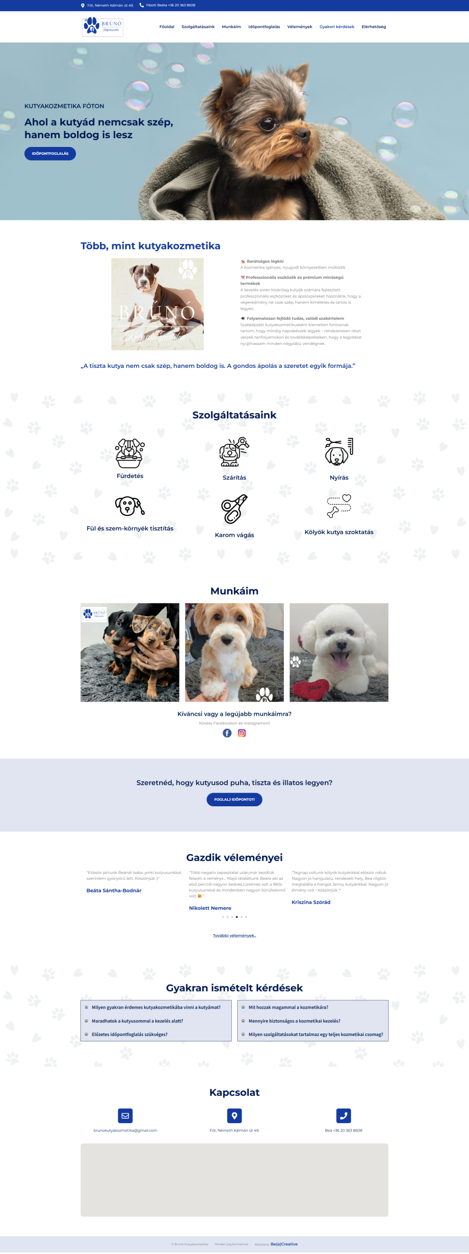 Rövid leírás: Stílusos weboldal kisállat-gondozó vállalkozásnak